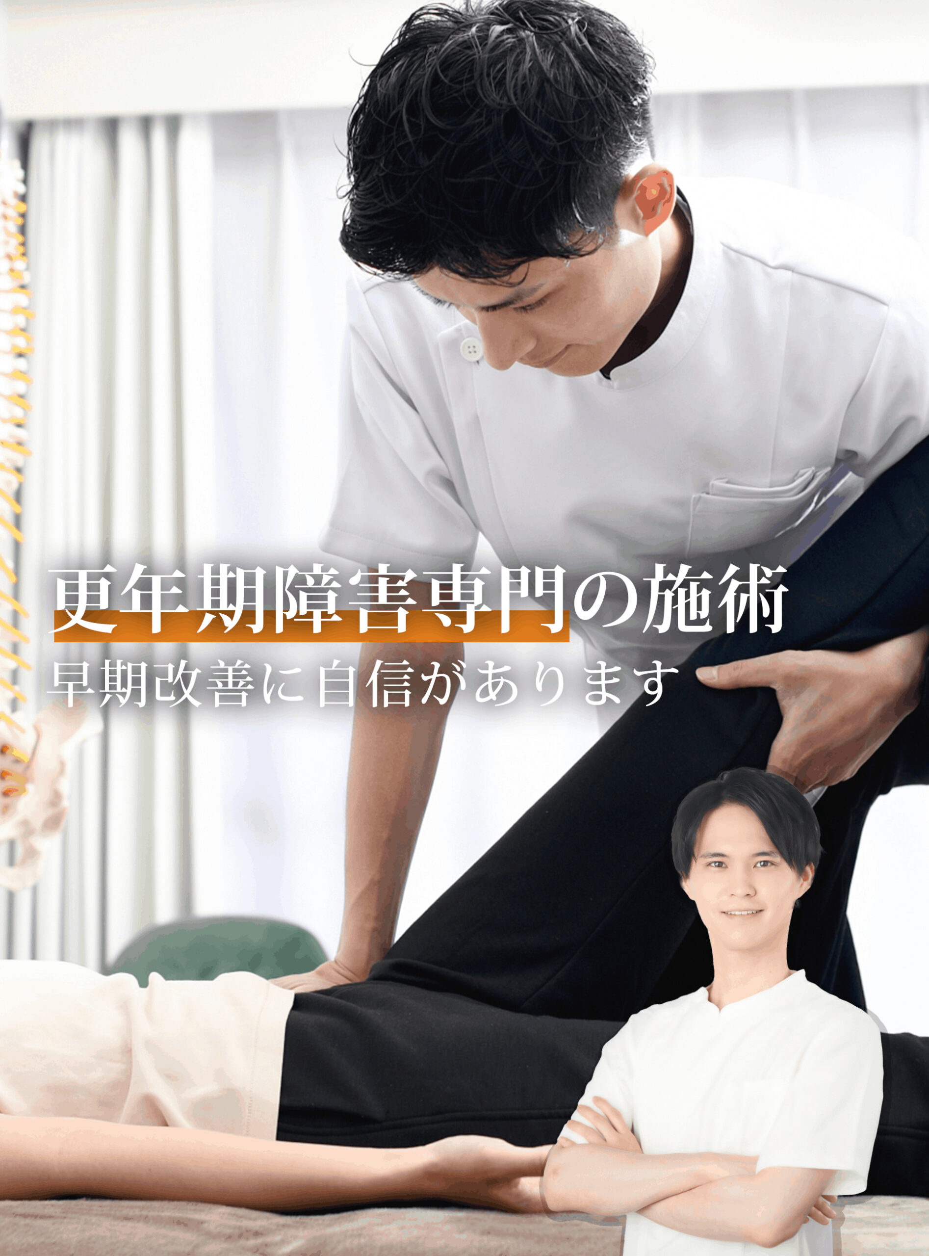 当院では、更年期障害には「骨格の歪みを整える施術」が力を発揮すると考えています。