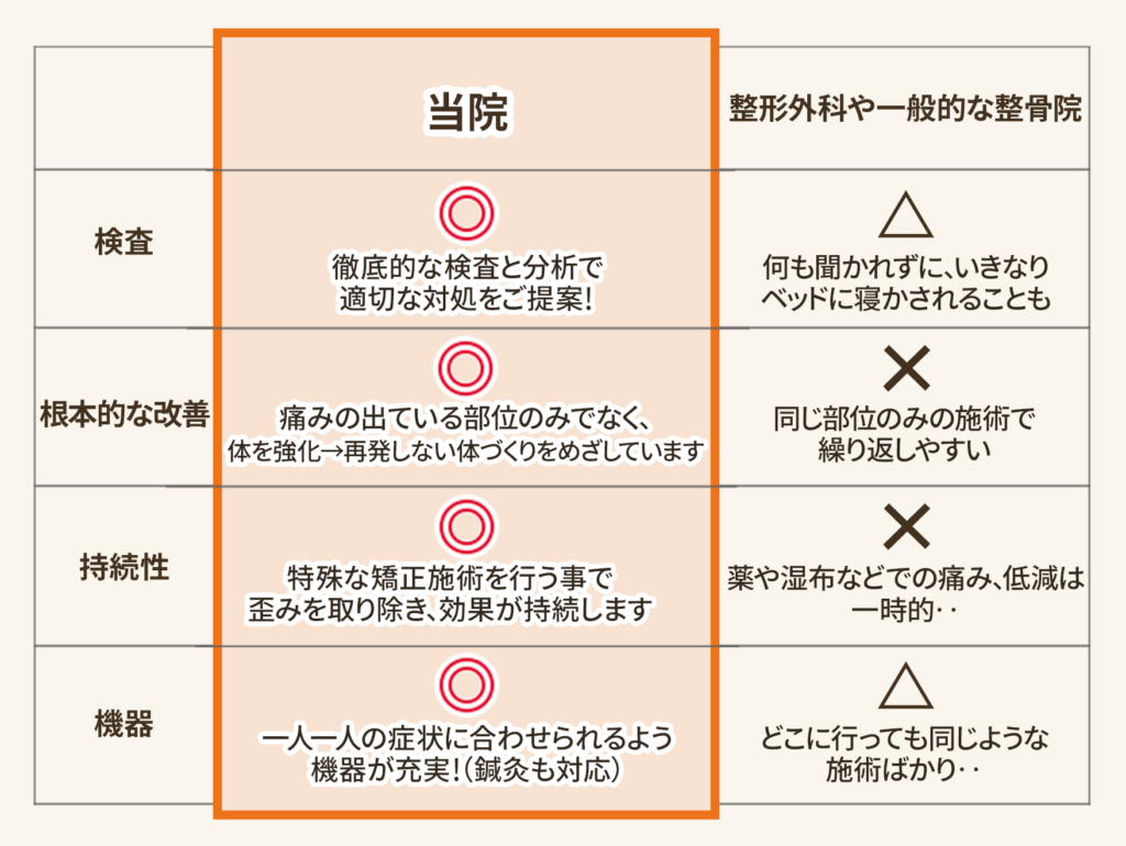 他の整骨院とちがう当院の3つのポイント